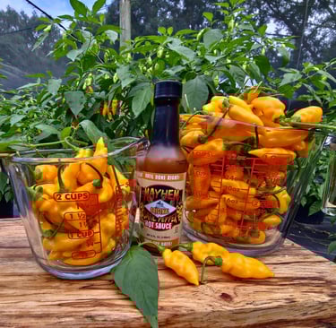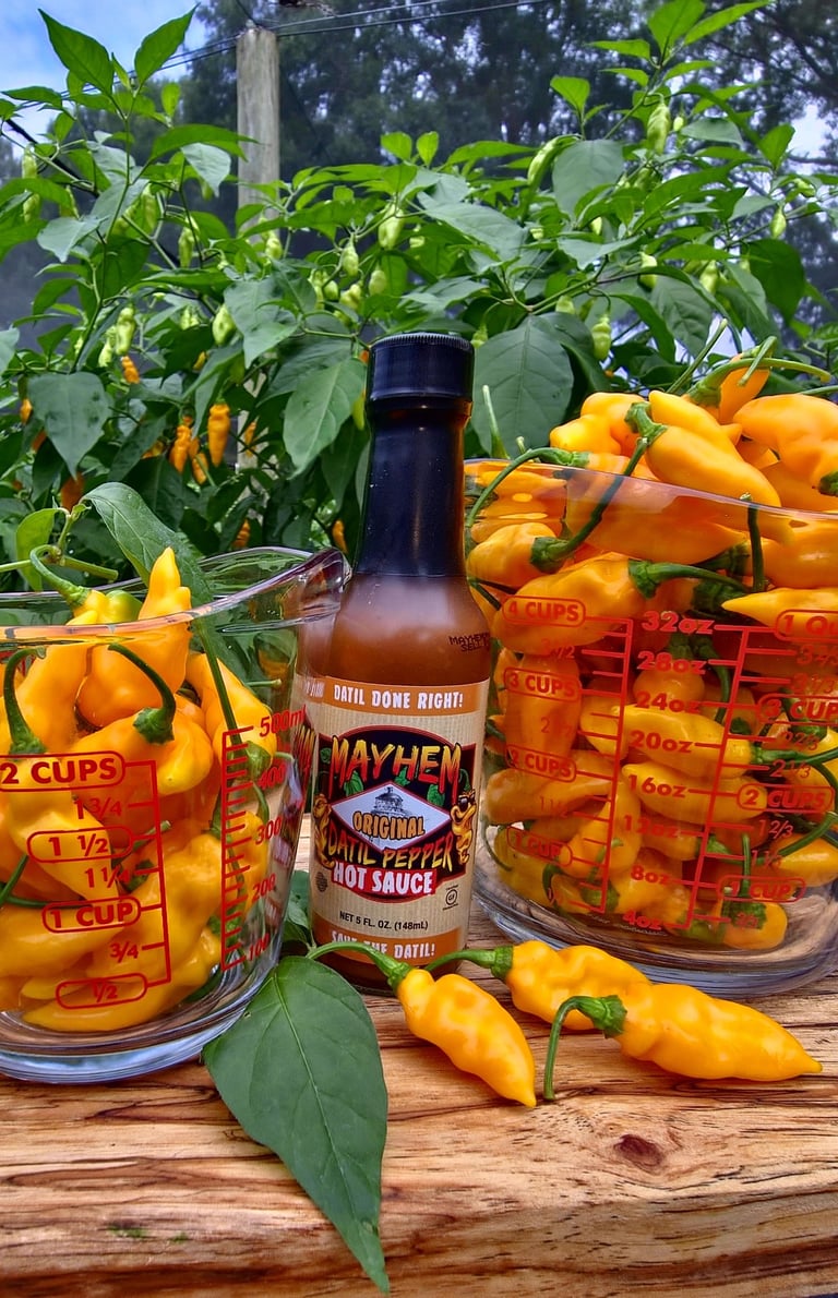 1/4 lbs. Fresh Mayhem Datil Peppers + Free Mayhem Sauce
