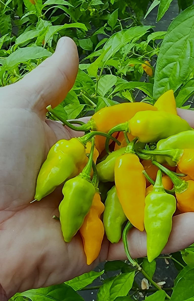 Heirloom Datil peppers are easily recognized by their distinct color transformation—from vibrant green through yellow to a rich orange. That’s why they’ve earned the nickname “Yellow Lantern Chili.”